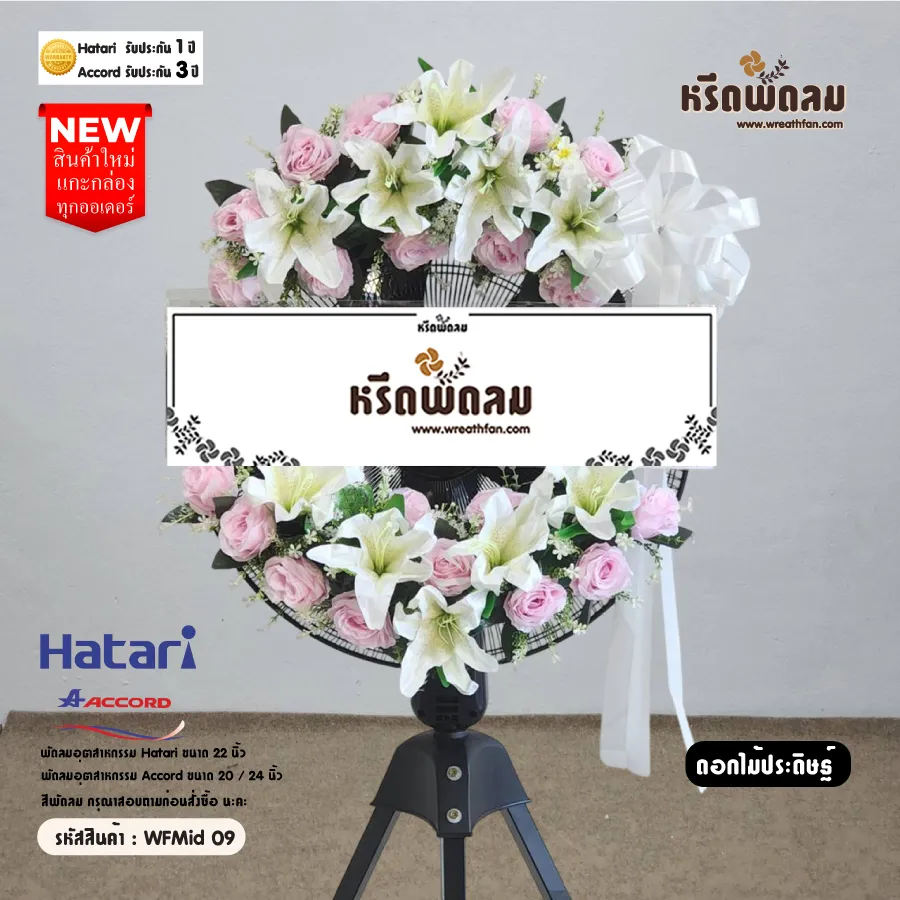 พวงหรีดพัดลมอุตสาหกรรม ประดับดอกไม้สด โทนสี ขาว-ชมพู จัดตามแบบ หรือเปลี่ยนโทนสีได้ เลือกสีพัดลมได้ (กรุณาสอบถามก่อนสั่งซื้อ) นะคะ (สินค้าใหม่แกะกล่อง)