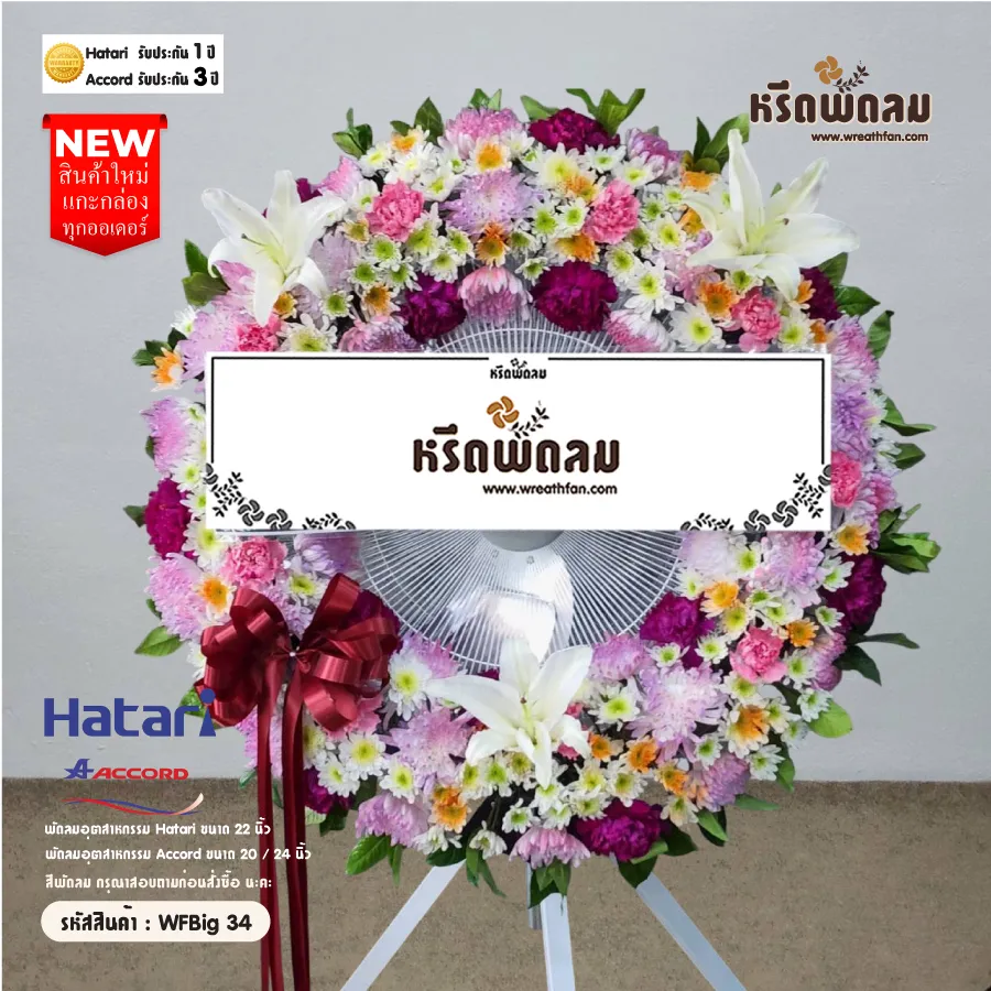 พวงหรีดพัดลมอุตสาหกรรม ประดับดอกไม้สด โทนสี สดใส จัดตามแบบ หรือเปลี่ยนโทนสีได้ เลือกสีพัดลมได้ (กรุณาสอบถามก่อนสั่งซื้อ) นะคะ (สินค้าใหม่แกะกล่อง)